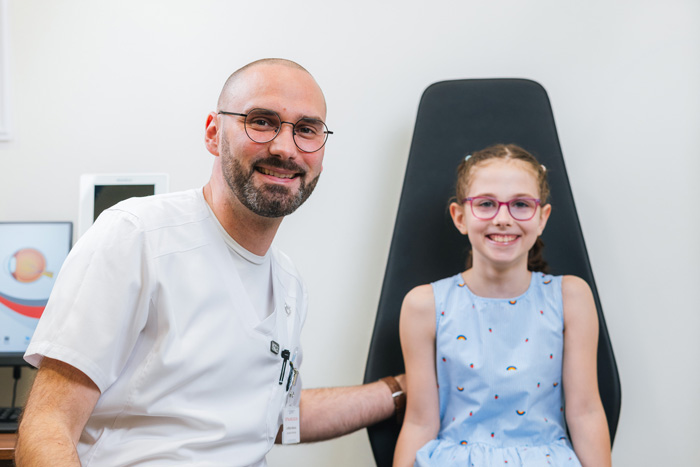Pregled oftalmologa je za decu potpuno bezbolan. Ukoliko je u pitanju beba, ili dete u uzrastu u kome je nemoguća saradnja pri pregledu, pregled se vrši objektivnom metodom merenja dioptrije pri proširenoj zenici, tzv. skijaskopijom.